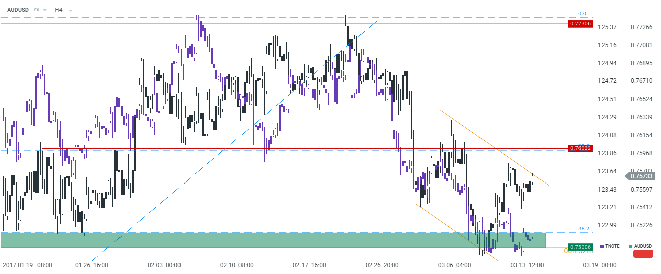 W przypadku USDJPY rynek powoli zniżkuje w kierunku, jak może się wydawać, kluczowe strefy wsparcia w okolicy 121,8. Dlatego też w obliczu prawdopodobnej podwyżki stóp przez FED rejon 122 może okazać się dobrym pomysłem do wznowienia longów.