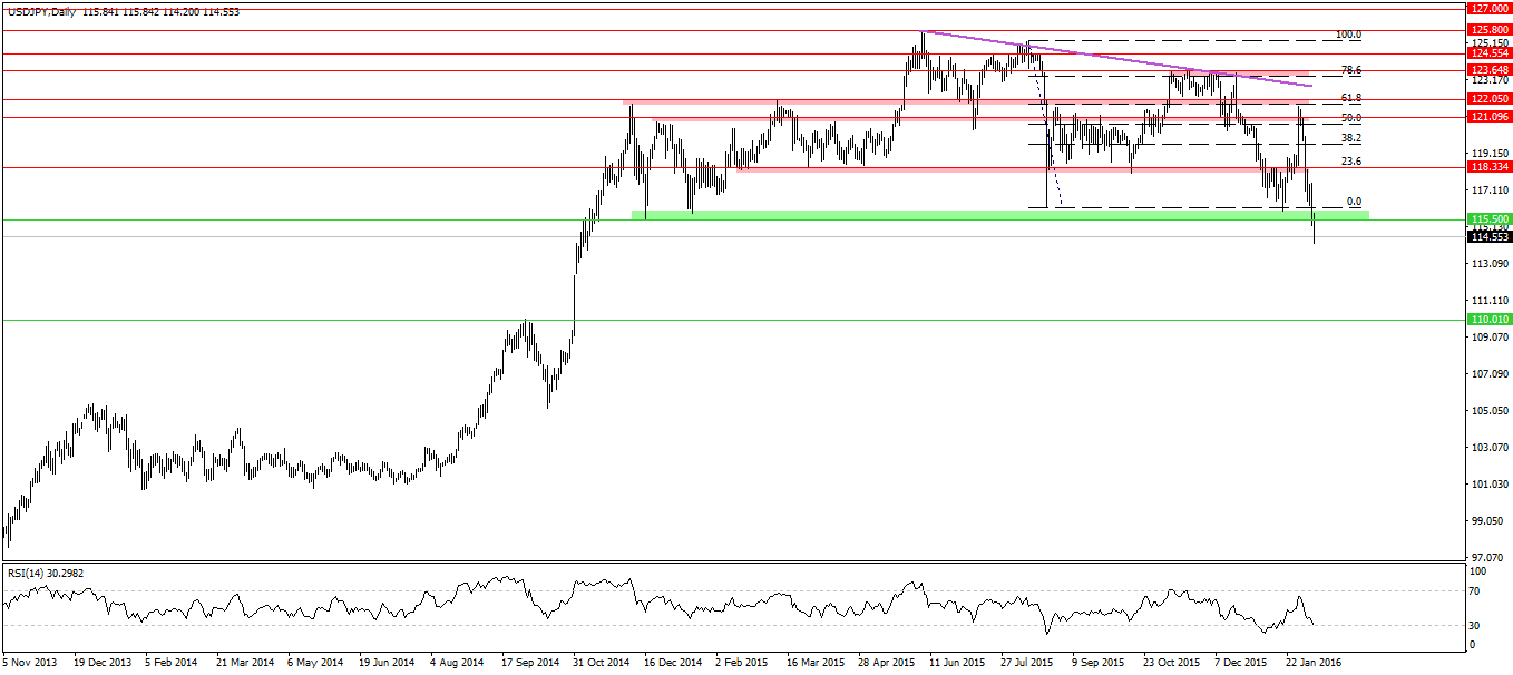 Notowania USDJPY z wielkim impetem pokonały wsparcie zlokalizowane na 115,5 i obecnie są na najlepszej drodze do rozszerzenia spadków, w czym pomaga bieżąca sytuacja rynkowa.