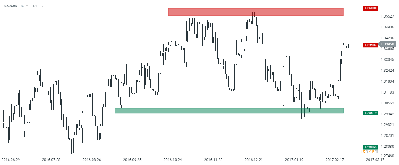Z tego powodu między innymi japoński jen jest jedną z mocniejszych walut w koszyku G10. Technicznie znajdujemy się na ważnej strefie popytowej, której pokonanie umożliwiłoby zejście w kierunku 109,15. Odbicie od tej strefy dałoby szanse na ruch w kierunku 111.