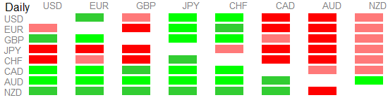 Rozczarowanie otrzymaliśmy zaś z Japonii w postaci słabszego odczytu PKB. Wartość w ujęciu zannualizownaym spadła do -1,4%. Z kolei w ujęciu kwartalnym ujrzeliśmy spadek do -0,4% z +0,3% poprzednio. Wyraźnie spadł również deflator PKB z 1,8% do 1,5%, co pokazuje spadkową presję inflacyjną. Dodatkowo nad ranem poznaliśmy kiepski odczyt produkcji przemysłowej. Niemniej jednak japoński indeks NIKKEI odrabia dzisiaj straty z poprzedniego tygodnia rosnąc aż o 7%, co jest największym wzrostem od 2008 roku. Owa zwyżka podyktowana jest prawdopodobnie oczekiwaniami dalszej stymulacji monetarnej ze strony BoJ. Inne indeksy dzisiaj również na plus z wyjątkiem Szanghaju, który spada o poranku o -1,6%. Na rynku walutowym najsilniejsze zdecydowanie waluty surowcowe (pomimo słabszych danych z Chin), z kolei traci blok „safe haven”.