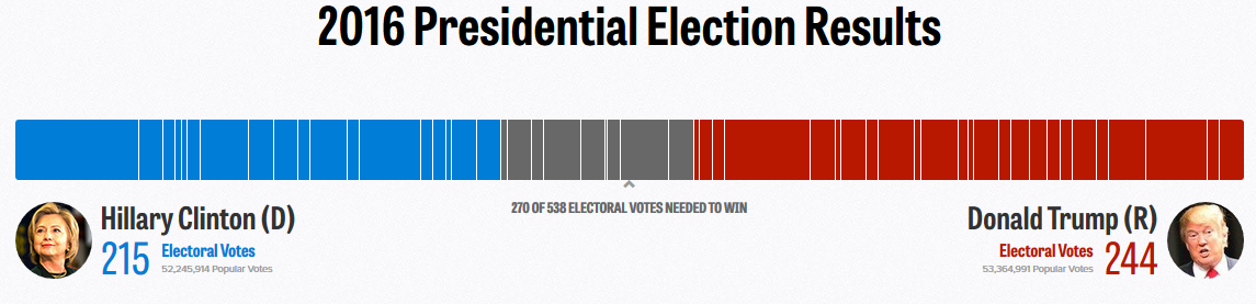Spoglądają na poniższy wykres widać, że przewaga Trumpa jest już całkiem spora. Przypomnijmy, by zostać prezydentem należy zebrać co najmniej 270 tzw. głosów elektorskich.