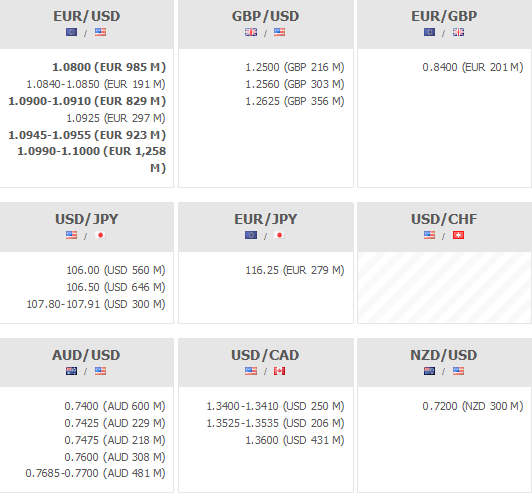 Poniżej znajdują się opcje walutowe wygasające o godzinie 16:00: