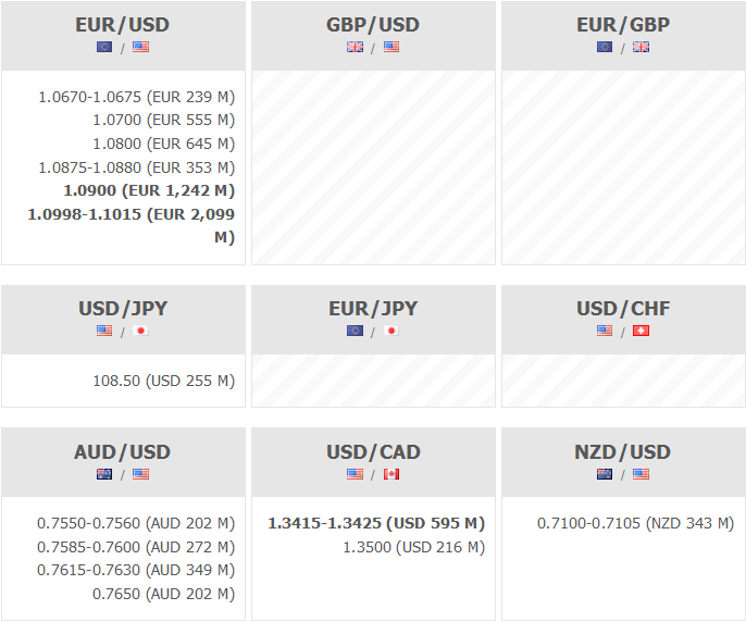 Poniżej znajdują się opcje walutowe wygasające o godzinie 16:00: