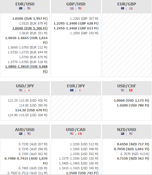 Poniżej znajdują się opcje walutowe wygasające o godzinie 16:00: