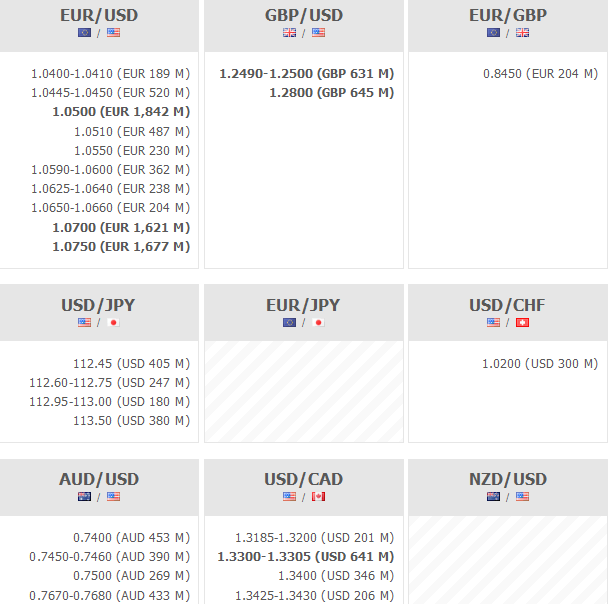 Poniżej znajdują się opcje walutowe wygasające o godzinie 16:00: