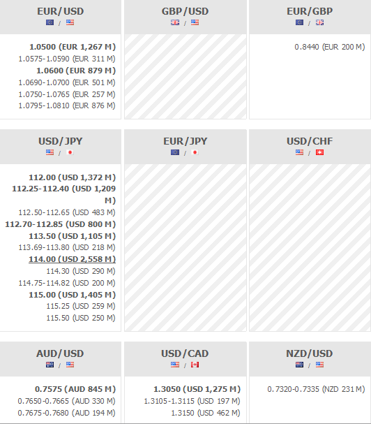 Poniżej znajdują się opcje walutowe wygasające o godzinie 16:00: