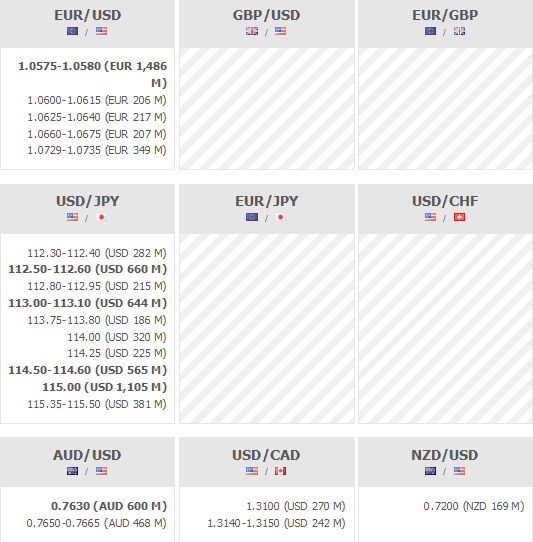 Poniżej znajdują się opcje walutowe wygasające o godzinie 16:00: