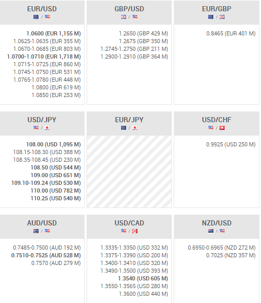 Wśród największych pozycji mamy te na EURUSD czy USDJPY. Należy dodać, że przedstawione niżej opcje są typu waniliowego, zatem pozostają „przy życiu” nawet po przekroczeniu strike’u opcji.