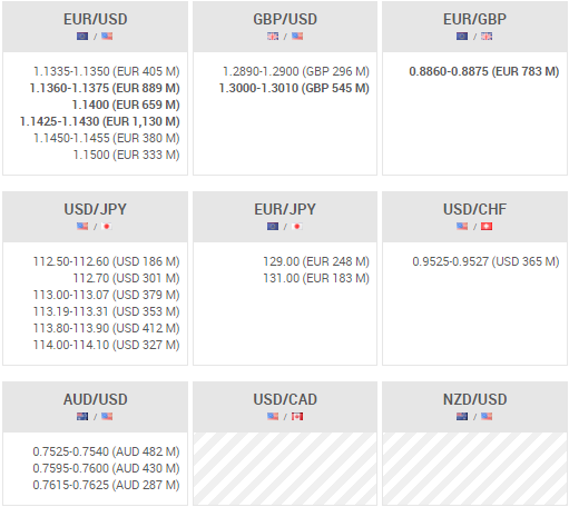Poniżej znajdują się opcje walutowe wygasające o godzinie 16:00: